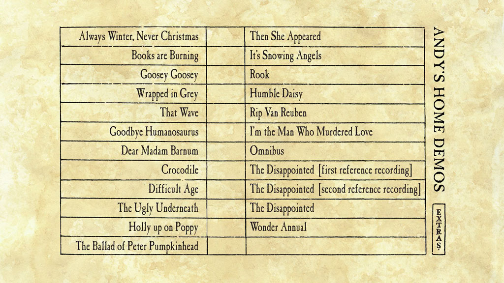 – exclusive Andy Partridge home demos and Colin Moulding work tapes for songs written for the album and contemporaneously.