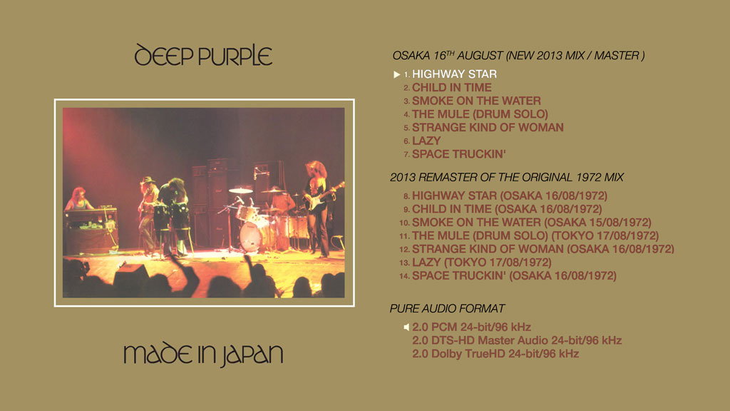 A Rolling Stone magazine readers poll in 2012 voted “Made In Japan” as the sixth greatest live album of all time. Together with Led Zeppelin and Black Sabbath, Deep Purple have been referred to as the “unholy trinity of British hard rock and heavy metal”. 2014 see’s Made in Japan newly remastered and released in a number of special formats.