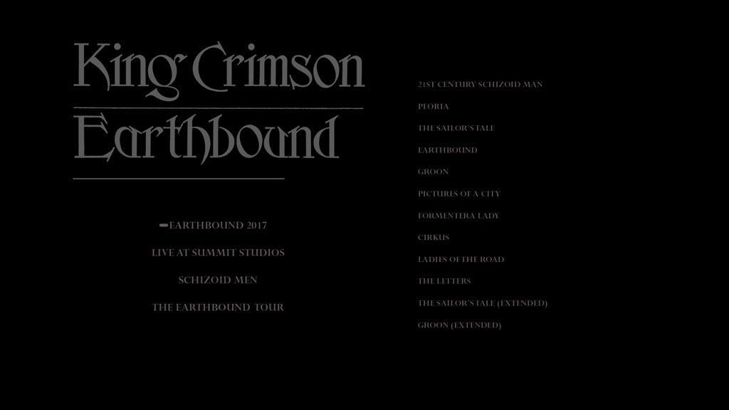 The Earthbound Tour blu-ray features an expanded version of the original album, Summit Studios gig in Stereo and Quadraphonic (newly mixed), the Schizoid Men sequence from the Ladies of the Road album, 2 newly discovered concerts in hi-res stereo and every existing soundboard concert recording from the 1972 US tour: Wilmington, NYC (2 shows), Chicago (2 tracks only), Detroit, Jacksonville, Orlando, Pittsburgh, Milwaukee, Peoria, Indianapolis & Denver (2 shows)