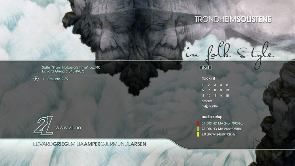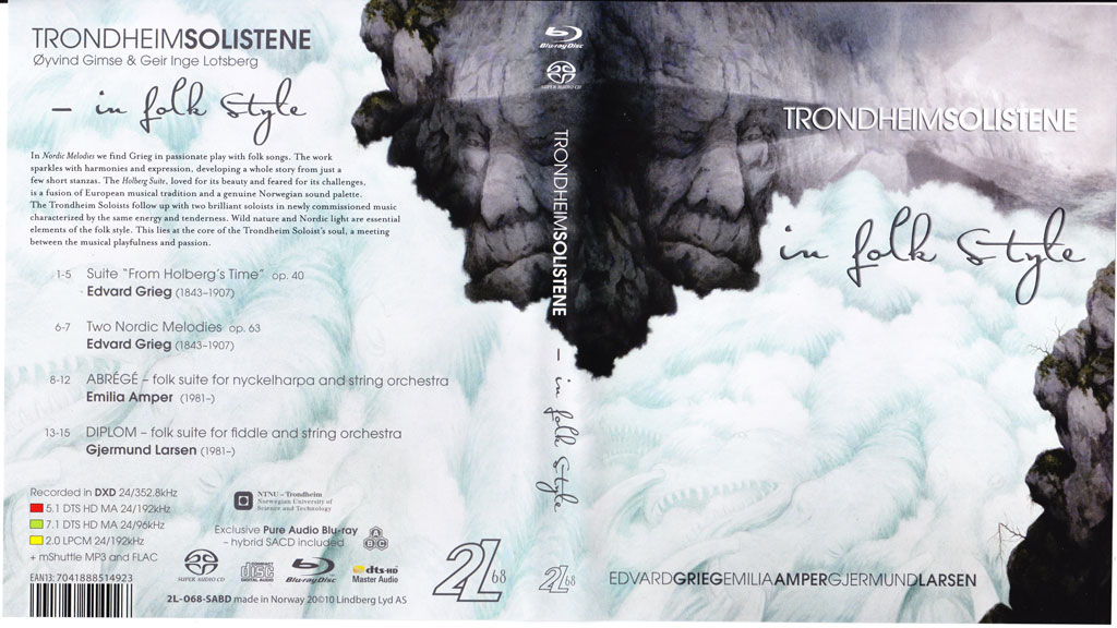 The Trondheim Soloists are regarded one of the top chamber orchestras in the world. Their DIVERTIMENTI was also nominated for the 51st GRAMMY Awards as “Best Small Ensemble”, “Best Engineered Album” and “Best Surround Sound Album” in 2008. Now IN FOLK STYLE sets a new standard for the performance of Edvard Grieg’s “Suite From Holberg’s Time” with the intense musical details revealed in this most spectacular surround sound recording ever made.