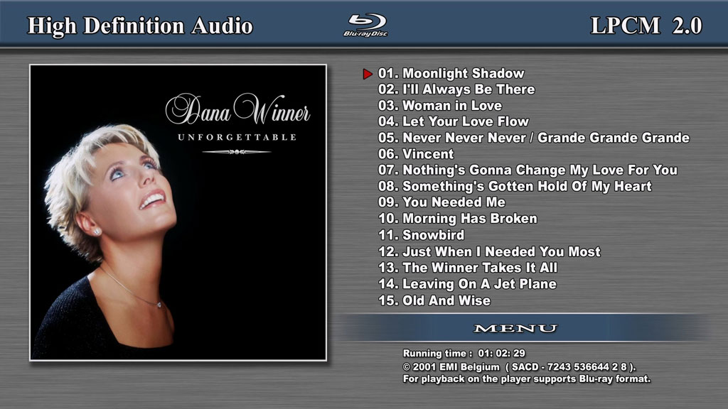 唱片名称:BDA_Dana Winner_Unforgettable – 2001 (EMI Music Belgium)