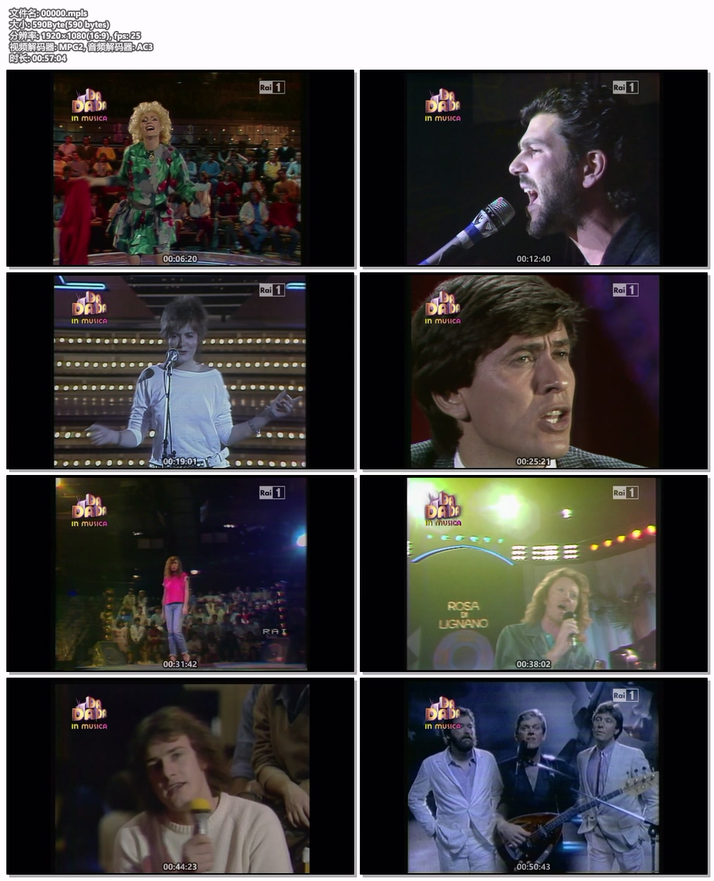 Описание: Выступления наиболее популярных итальянских артистов 80-ых годов на телеканале Rai1 HD в телепередаче “Da Da Da”