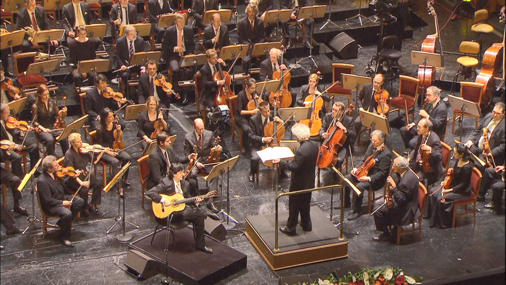 Every year since 1991, The Berliner Philharmoniker have marked the anniversary of their foundation with a concert in a different cultural capital : For their twenty-first European Concert on 1 May 2011, They were the guests of the magnificent Teatro Real in Madrid. Their program comprised the exuberant rhapsody España by the French composer Emmanuel Chabrier, Rachmaninov′s dramatic Second Symphony and a quintessential Spanish composition : Joaquín Rodrigo′s Concierto de Aranjuez.