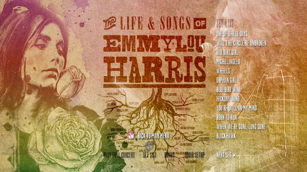 • The recording of that event, The Life & Songs of Emmylou Harris: An All-Star Concert Celebration, created and produced by Keith Wortman, CEO of Blackbird Presents – released last Friday in multiple formats, including Blu-ray, DVD, CD, and various combo packs — certainly lives up to its title. Captured and presented in stunning HD with true Dolby 5.1 surround stereo, the concert film and companion audio recordings include a wide range of songs Harris has recorded, including “Born to Run,” “Red Dirt Girl,” “Boulder to Birmingham,” “Two More Bottles of Wine,” “Till I Gain Control Again,” and “Sin City.”