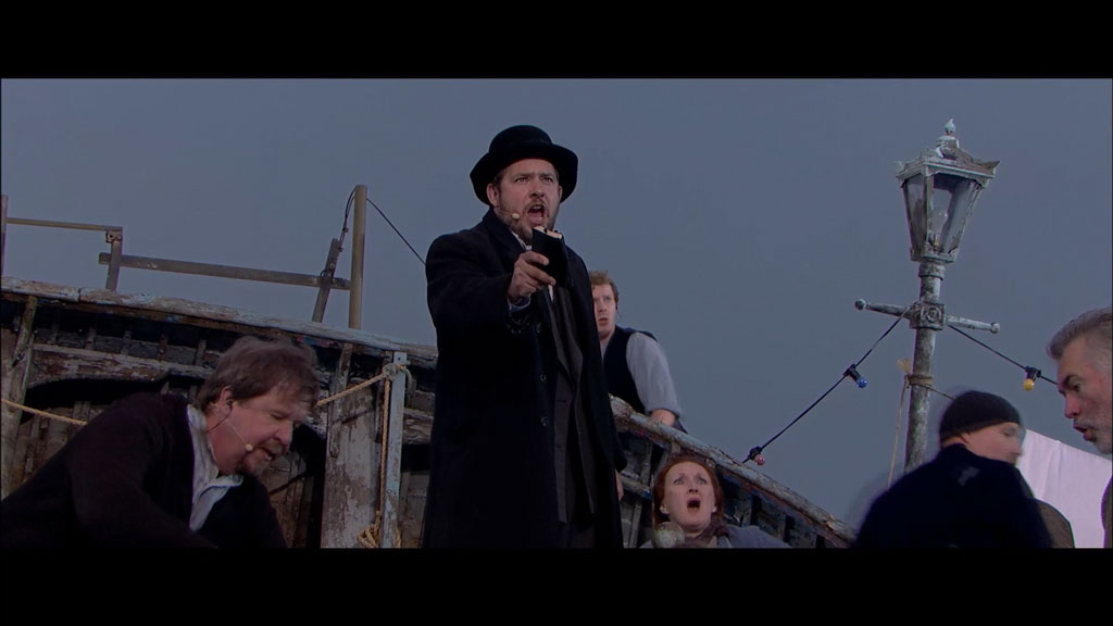 Filmed in June 2013 during three extraordinary performances that took place during the Aldeburgh Festival, “Peter Grimes on Aldeburgh beach” takes place in the heart of the town that inspired it and is the film interpretation of Britten’s “Peter Grimes”, the most successful opera of post-war Britain. Based on George Crabbe’s 1810 poem ‘The Borough’, Britten’s powerful and masterful evocation of the North Sea in all its moods has become inextricably linked with the Aldeburgh that was home to Crabbe in the late eighteenth century and Britten in the twentieth, and where both poem and opera were written. Conceived and hosted by the Aldeburgh Festival, the performances of “Peter Grimes” were directed by Tim Albery who placed the audience on the beach watching the story of “Peter Grimes” unfold as dusk fades over the sea. The cast and chorus, with Alan Oke in the eponymous role of Peter Grimes, Giselle Allen as Ellen Orford, and David Kempster as Captain Balstrode, sing live with amplification, while the Britten-Pears Orchestra under the baton of Britten expert Steuart Bedford is pre-recorded.