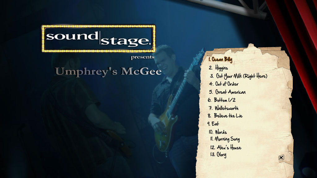 Soundstage: Umphrey’s McGee – Live is the third DVD release from progressive rock band Umphrey’s McGee. It was recorded during the Summer of 2007 in Chicago, Illinois for the PBS music series Soundstage. The DVD includes 13 songs from the Soundstage performance and two additional bonus tracks from their 2008 New Year’s run at the Auditorium Theatre in Chicago.