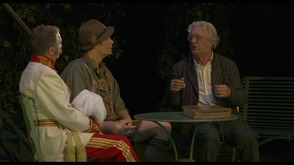 Once upon a time there was a fairy tale king who loved lavish presentations, particularly his own. Often bordering on madness. And then the genius W. A. Mozart comes on the scene two people who hadn’t been looking for one another, but found each other all the same?… Guttenberg’s Bavarian adaptation of the Magic Flute, which was rapturously received at the HerrenChiemsee Festival, in Munich’s Prinzregententheater and then shortly afterwards in the cinema, draws on a common custom of the 19th century aristocratic families considered it as a ritual denoting good education to perform famous stage works themselves in their own domestic surroundings. In this version, Bavarian-Austrian-Prussian high nobility comes together: King Ludwig (Sarastro), Emperor Franz Joseph (Tamino), Empress Elisabeth (Pamina), Archduchess Sophie (Queen of the Night), Prince Bismarck (Monostatos) and many others. The role of the real Papageno is played by the actor Gerd Anthoff. He relates the true story of the Magic Flute to the audience in the Bavarian dialect.