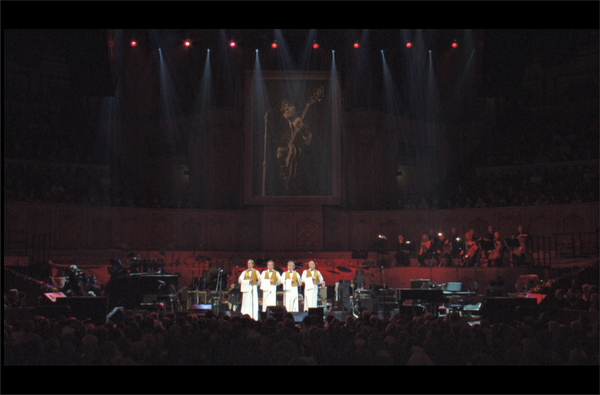 在漫天的纸屑中,演唱会结束,大家一一告别,Paul爵士也和George遗孀拥抱,看来关系还不错。看到这儿,不禁想到John Lennon。Lennon是Beatles里面最理想主义的一个,他在81年被枪杀之后,剩余的三名成员除了推出一张玩票的纪念性专辑外,几乎已经把他遗忘。George去世后,有Eric Clapton这个大牛给他操持这么一场精彩绝伦的音乐会,John就没这么好的运气了。也许小野洋子女士要付一些责任?谁知道,望着镜头里哈里森大幅照片,心里想I’ll see you in my dreams too, George。