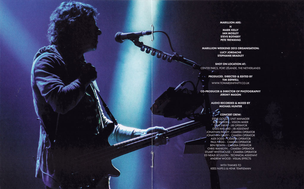 One band. Three nights. Three Thousand fans. From Fifty Two countries. Marillion Weekends have become a tradition amongst the fan base, “the family”. The main Dutch weekend (there are two others in the UK and Canada) sold out within hours of the tickets being released. It may have been the fifth time the band had put on such a spectacle in Port Zelande, but in a whole host of ways for the 2015 edition, the bar had well and truly been raised. This time, our brief extended beyond ‘just’ the concert film coverage, to include the creation of content for the concert screens, as well as producing and filming a feature documentary about the band and this unique event. Working in close partnership with the band’s lead singer Steve Hogarth, and their graphic design genius, Simon Ward we orchestrated a green screen shoot, and a more traditional ‘live action’ shoot which became the backdrop for the Saturday night rendition of the band’s well- I loved ‘Marbles’ album. We also created screen content for the Sunday night too – weaving together elements of archive stills and footage alongside animated album artwork. We also ‘upped the ante’ when it came to the concert films themselves. All three nights were filmed for release – promising an amazing product with the concerts themselves, plus the opportunity to create some top quality bonus material to set the live gigs in context. We handpicked and worked with an incredible and talented crew, which has made sure that concert footage we captured this year has surpassed all others. The three-concert film box set is slated for release later in 2016, to follow the release for the bands upcoming album, earlier in 2016. But three concerts filmed back-to-back was not enough!