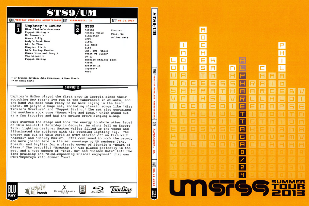 Umphrey’s McGee played the first show in Georgia since their scorching New Year’s Eve run at the Tabernacle in Atlanta, and the band was more than ready to be back raging in the Peach State. UM played a huge set, including classic songs like “Miss Tinkle’s Overture” and “Puppet String.” The set also contained the southern rock tune “Women Wine and Song,” which stood out as a fan favorite and had the entire crowd singing along. STS9 stormed the stage and took the energy to whole other level on this beautiful Saturday in Georgia. As night fell on Encore Park, lighting designer Saxton Waller filled up the venue and illuminated the audience with his stunning lighting rig. The energy was out of this world as STS9 started off on fire with “Kabuki” and “Monkey Music”. STS9 continued to rock the crowd, and were joined late in the set on-stage by UM members Jake, Stasik, and Bayliss for a classic cover of Blondie’s “Heart of Glass.” The beautiful “Breathe In” was placed perfectly in the set, and a huge encore of “This, Us” and “Golden Gate” left the fans praising the “mind-expanding musical enjoyment” that was STS9/Umphreys 2013 Summer Tour!