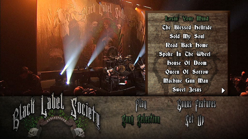 Black Label Society, formed in the late nineties by legendary guitar hero Zakk Wylde, have established themselves at the forefront of heavy metal with a series of hard riffing and hugely successful albums alongside worldwide tours that have cemented their reputation as one of the most powerful live bands of their generation. Unblackened finds Black Label Society in a mellower mood in a performance filmed at Club Nokia in Los Angeles earlier this year. The concert showcases the band’s songs with a greater use of acoustic instruments but without losing any of their power and intensity. Zakk Wylde leads from the front as always, performing here on both guitar and piano and demonstrating the subtler side of his music alongside the blistering solos that his fans know and love. This is definitely a live concert not to be missed!