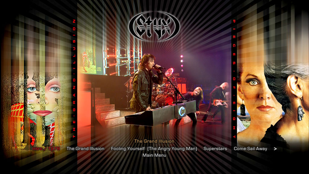Filmed on November 9th, 2010 at the historic Orpheum Theater in Memphis, TN, this stunning show captures Styx performing their classic multi-platinum seventies albums The Grand Illusion and Pieces Of Eight live in their entirety for the first time. These iconic albums established Styx as a globally successful rock band and defined the AOR genre for a generation of Americans. These new live performances perfectly portray the power, songwriting skill and musical virtuosity that are synonymous with Styx throughout their career and with these groundbreaking albums in particular.