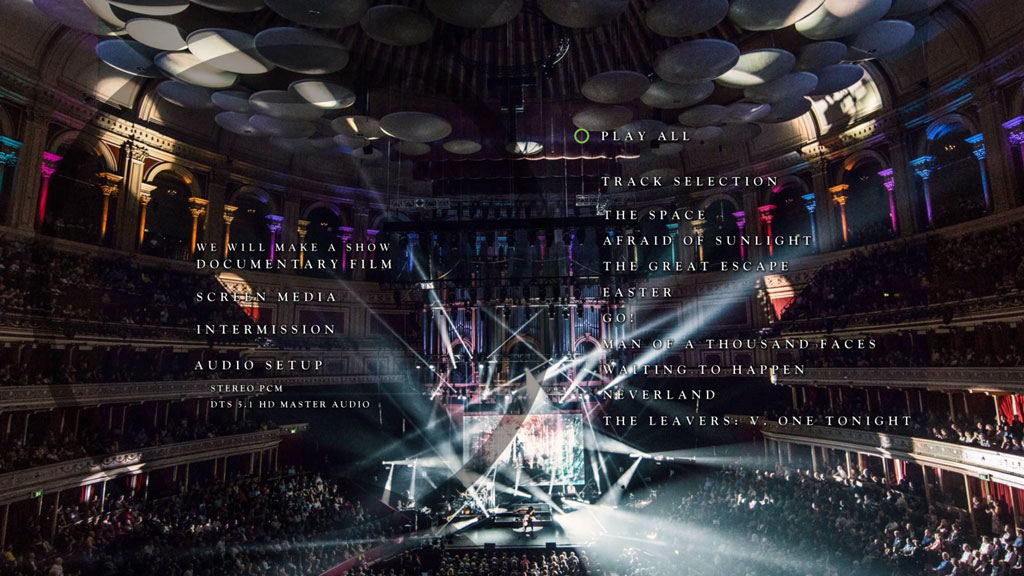 The concert film was directed and edited by Tim Sidwell and recorded and mixed by Michael Hunter. Also includes documentary, “We Will Make A Show” and screen media from second part of the show.
