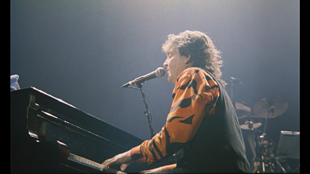 After 13 years producing studio albums that were not-so-favorably received by the critical establishment, ex-Beatle Paul McCartney made a remarkable return to the road in 1989-1990 with his “Get Back” world tour. The show, which also featured Paul’s wife Linda, as well as a full band, showcased music from throughout McCartney’s career, with a carefully-selected set list comprised of just the hits. Beatles songs such as “Fool on the Hill” and “I Saw Her Standing There” sit side by side with solo efforts and Wings songs, such as “Band on the Run” and “Live and Let Die.” Richard Lester, who made the early Beatles films HELP! and A HARD DAY’S NIGHT, came out of retirement to create this document of the tour, which is comprised of highlights from concerts across the globe. While the film shows uninterrupted concert and song footage, the archive photographs McCartney projected behind the band during the shows provides a look back in history at the peaceable star’s remarkable career.