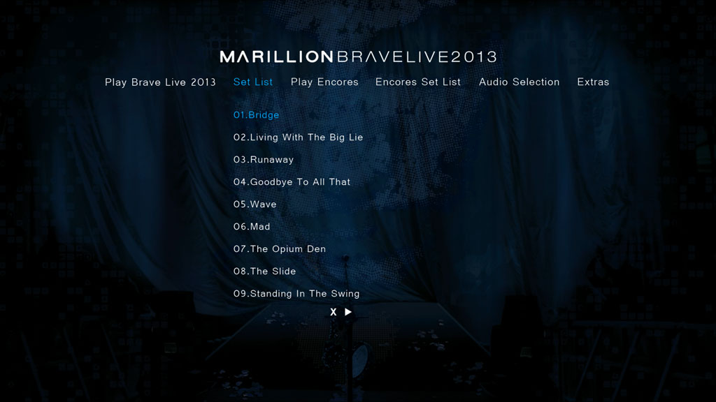• Recorded on the 9 March 2013 at the Marillion Weekend in Centre Parcs, The Netherlands. This concert film features the whole of the Brave album performed in full plus over an hour of encores and extras. This unique event was captured in glorious high definition by 15 cameras in a purpose built arena, bringing you a truly unique event and a defining moment in Marillion’s live performance career.