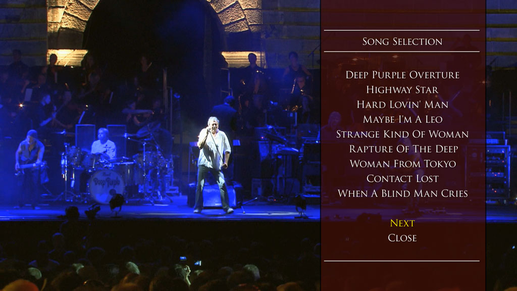 Filmed in the spectacular surroundings of the Arena di Verona, a Roman amphitheatre originally built in 30 AD, this concert from the summer of 2011 sees Deep Purple joined on stage by a full symphony orchestra for performances of all their classic tracks. Deep Purple remains one of the finest hard rock bands on the planet and are undoubtedly at their best when performing live. Here, the orchestral arrangements give an added depth and range to the familiar songs and the band responds to both playing with the orchestra and performing in such a historical location to deliver a brilliant show in front of a huge and enthusiastic crowd.