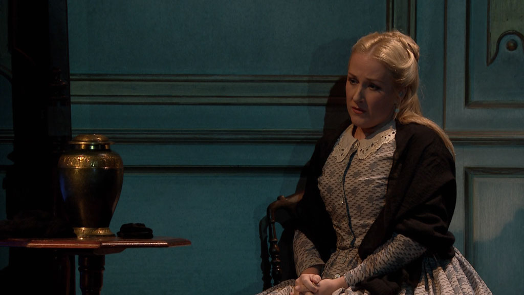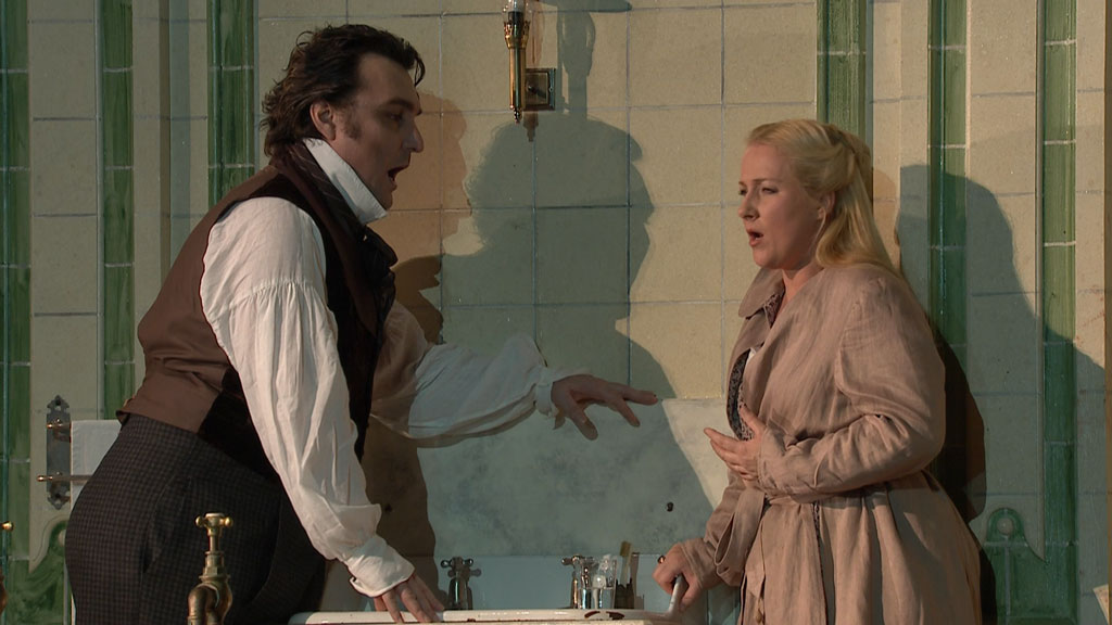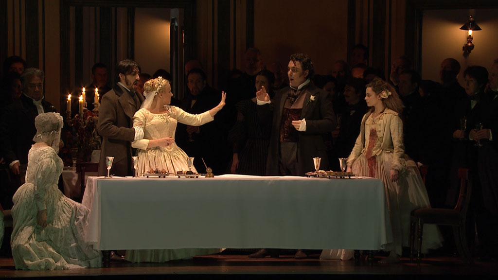 Diana Damrau’s reputation as the world’s leading coloratura soprano has been built on her extraordinary technical virtuosity, her sensitive musicianship and her acute psychological insight. In Katie Mitchell’s sometimes radical production of Lucia di Lammermoor from the Royal Opera House, she is, as the Financial Times wrote, ‘brilliantly convincing’. Award winning director Katie Mitchell took a revisionist approach to the drama, updating the action to the mid-19th century and applying a feminist slant as she added new and unexpected elements. Mitchell also made extensive use of a ‘split screen’ effect on the stage, counterpointing two different pieces of action at key moments.