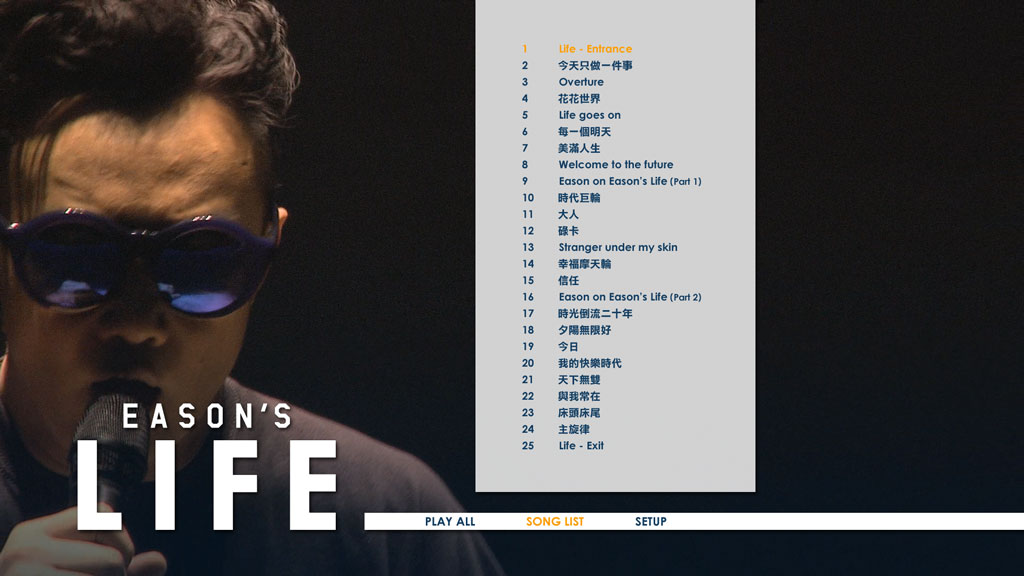 《Eason’s LIFE》演唱会的主题是「LIFE」,是 Eason 的主意,而且演唱曲目更是在开唱前的3个月前已经敲定。要在Eason的400多首歌内挑出与生命有关的歌,真的非常不容易。演唱会舞台效果令人耳目一新,带给大家很多意外惊喜。Eason换上多套非常另类的服饰载歌载舞,毫不留力的演出。