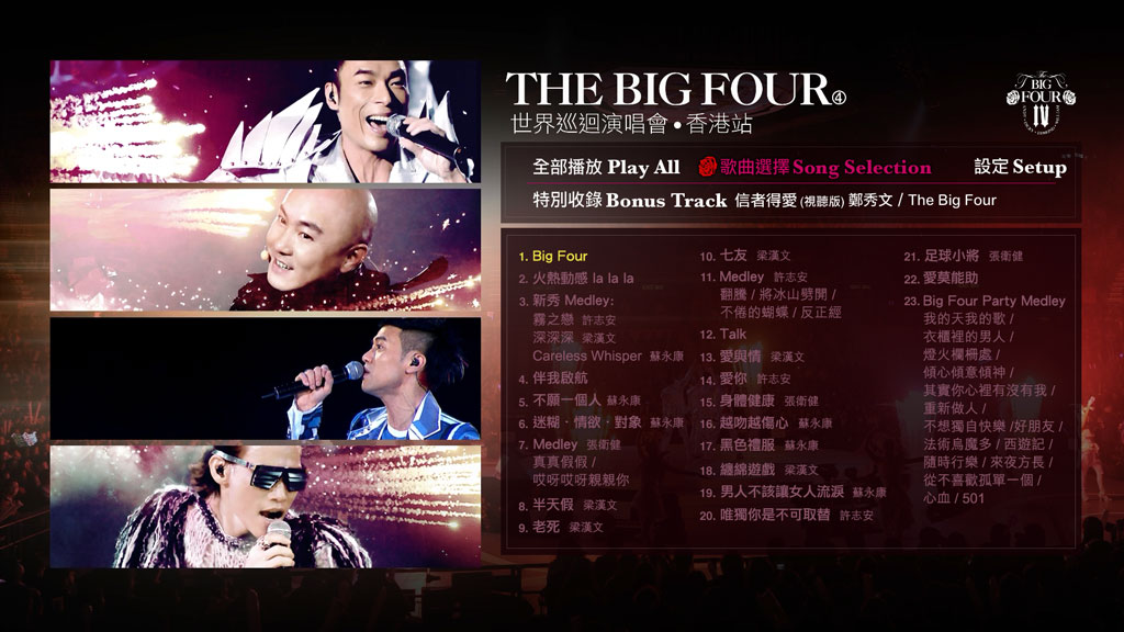 英文片名:The Big Four World Tour – Live In Hong Kong Karaoke