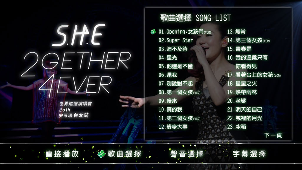 英文片名:S.H.E 2gether 4ever Encore live concert in Taipei 2014