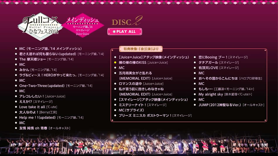 英文片名:Hello!Project Hina Fes 2014 – Full Course – (Main Dish wa Morning Musume.’14 Desu.)