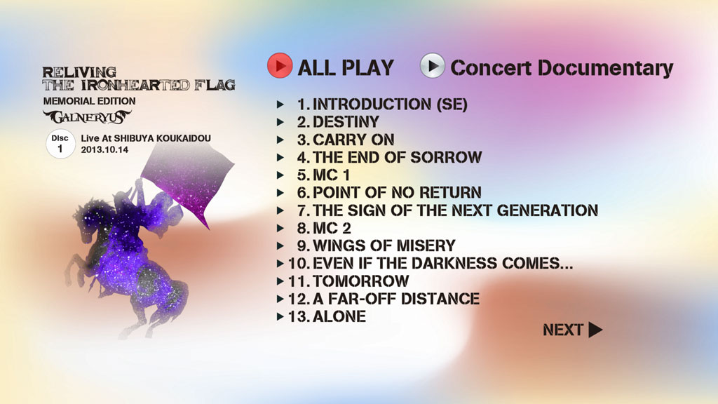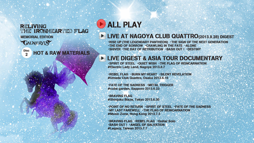 DISC 1 – Live At Shibuya Koukaidou 2013.10.14 (ARISING THE IRONHEARTED FLAG! TOUR FINAL At Shibuya Public Hall):