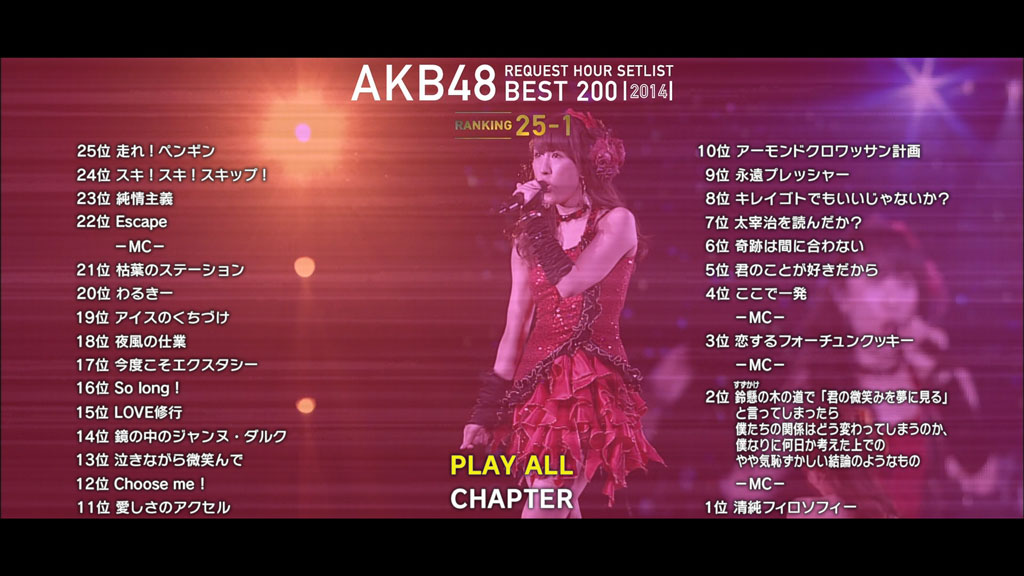 英文片名:AKB48 – Request Hour Setlist Best 200 2014 (100~1 Ver.)