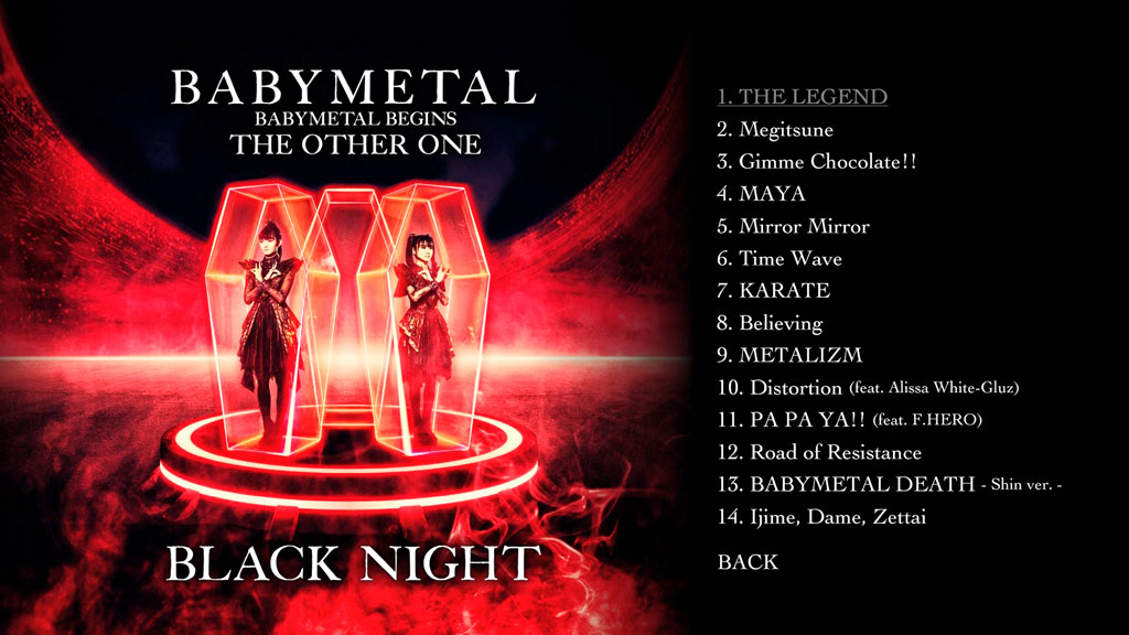 4月1日(土)の「BLACK NIGHT」からは、3月に発売されたコンセプトアルバム「THE OTHER ONE」より新曲5曲(「MAYA」、「Mirror Mirror」、「Time Wave」、「Believing」、「METALIZM」)のライブ初披露の模様を収録。