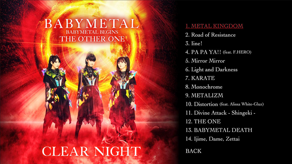 壮大な幕開けや色鮮やかに輝くバトルスーツに身を包み、新たな面持ちで新境地へと歩みを進めたBABYMETALの姿を収録。