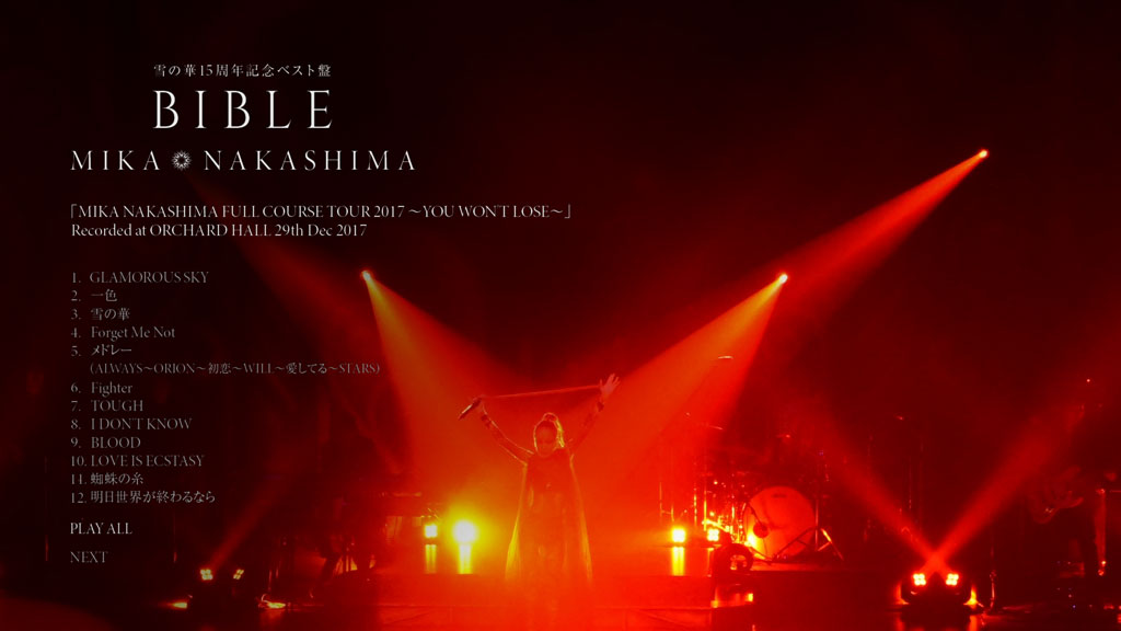 更に、初回生産限定盤Blu-rayとDVDには昨年開催したベストツアー的な内容となる「MIKA NAKASHIMA FULL COURSE TOUR 2017~YOU WON‘T LOSE~」のライブ映像が収録される他、スタッフが選ぶ「中島美嘉名言集入りフォトブックレット」付きの豪華仕様!!