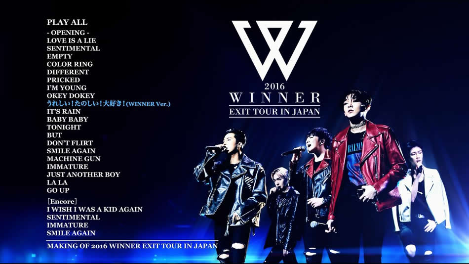 WINNERの3rdツアー『2016 WINNER EXIT TOUR IN JAPAN』より、神戸ワールド記念ホールで行われた公演を収録したBlu-ray。ライブ本編の他、全国ツアーに密着したドキュメント映像も収録。