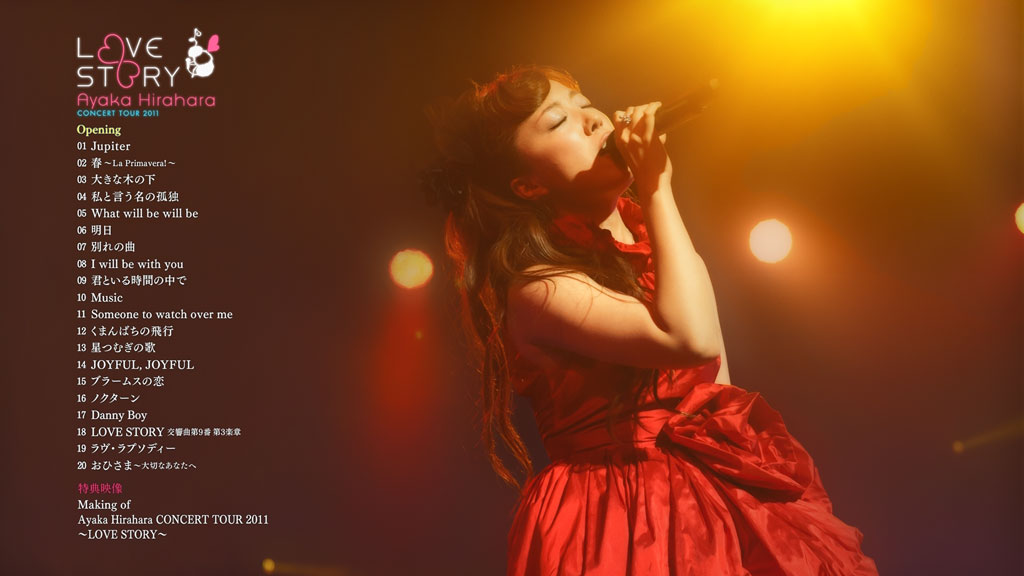 Release of Ayaka Hirahara “Concert tour 2011 Love Story” on DVD including final live held at Showa Women’s University. Includes also video bonus footage and interview.