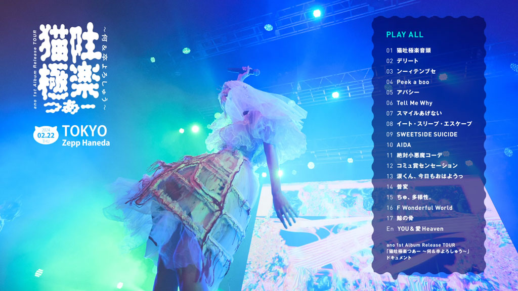 『ano 1st Album Release TOUR “猫吐極楽つあー ~何&卒よろしゅう~”2024.2.22….Zepp Haneda (Tokyo)』/Blu-rayDisc Video