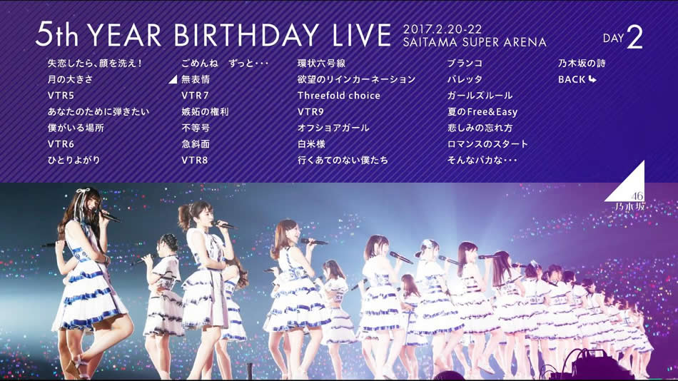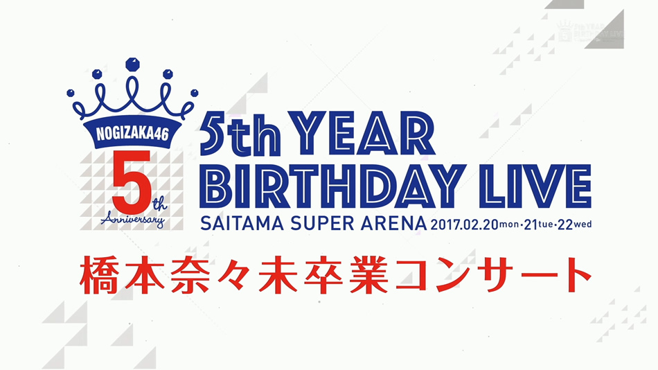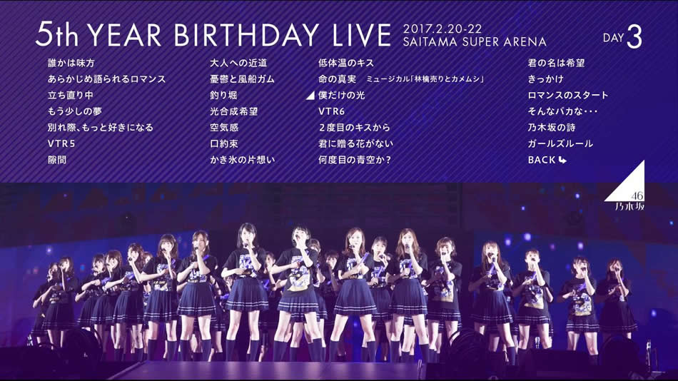 英文片名:Nogizaka46 – 5th Year Birthday Live 2017.2.20-22 SAITAMA SUPER ARENA