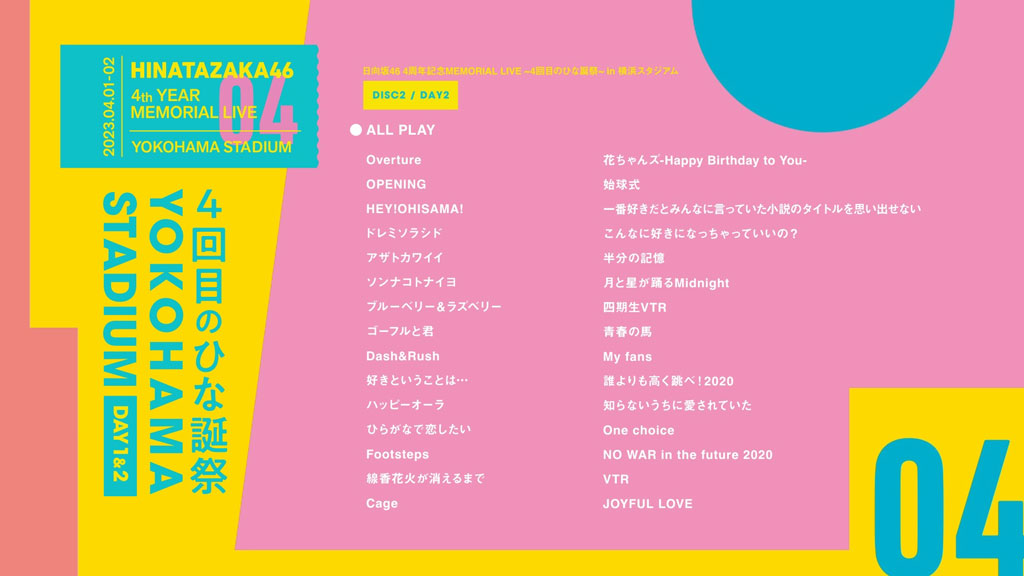 洋題:Hinatazaka46 4TH YEAR MEMORIAL LIVE -4KAIME NO HINATANSAI- IN YOKOHAMA STADIUM -DAY1 & DAY2-