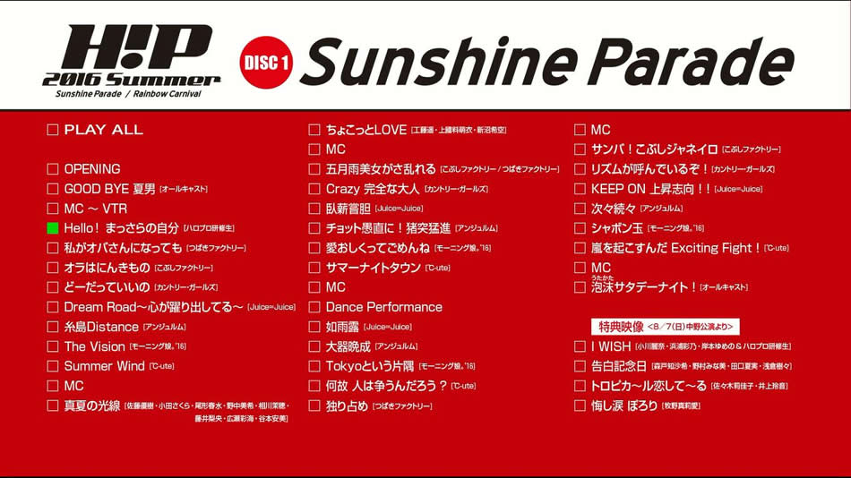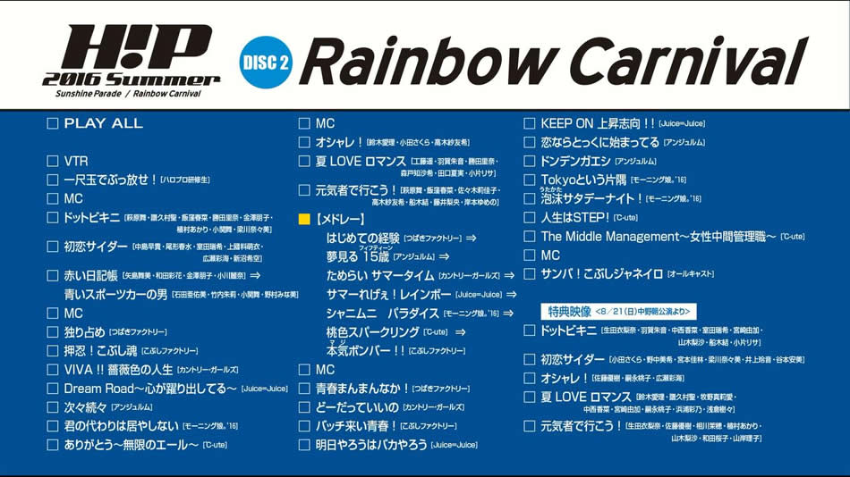 英文片名:Hello! Project 2016 SUMMER ~Sunshine Parade~・~Rainbow Carnival~