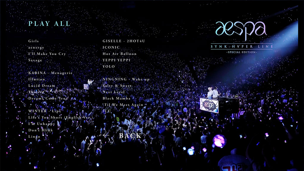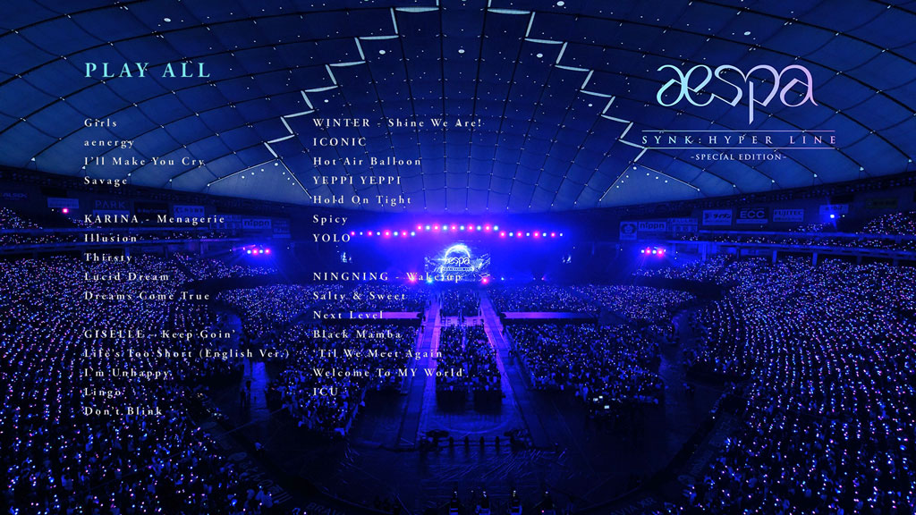 SM Entertainment girl group aespa launched their first worldwide tour SYNK: HYPER LINE in 2023. For the Japan leg of the tour, the girls held 12 concerts including shows in Osaka, Saitama, Nagoya and Tokyo. This release features full recordings of two aespa performances at Saitama Super Arena in April and Tokyo Dome in June!