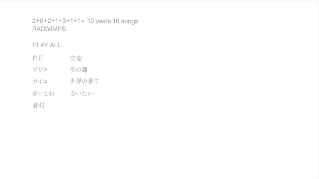 Blu-rayには、10年間RADWIMPSと想いを共にしてきた島田大介氏による、YouTubeで公開されてきた映像作品を収録。