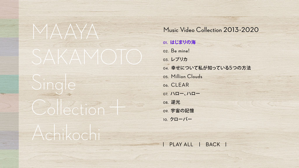 | 1 | HAJIMARI NO UMI / SAKAMOTO MAAYA はじまりの海 (Music Video Collection 2013-2020) / 坂本真綾 |