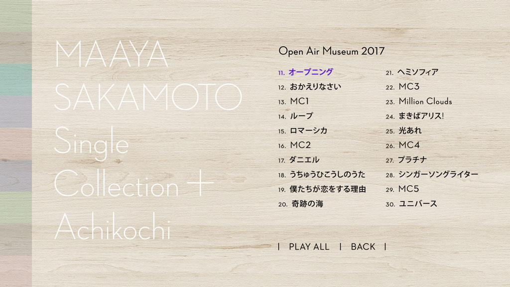 | 28 | SINGERSONG WRITER / SAKAMOTO MAAYA シンガーソングライター (Open Air Museum 2017) / 坂本真綾 |