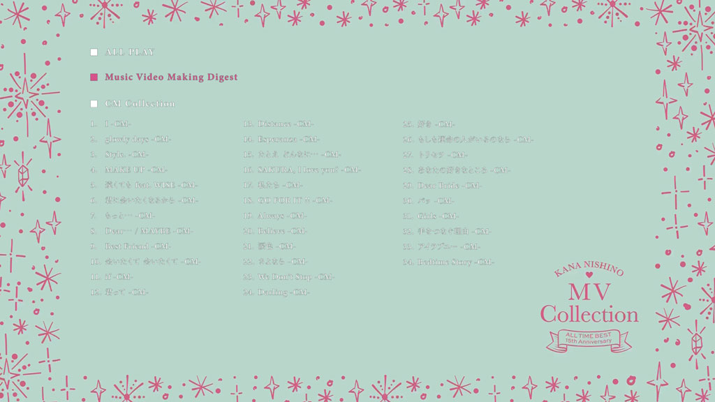 さらに、撮影の裏側に迫ったメイキング映像ダイジェストや、初収録となる全シングルのCMを収録!
