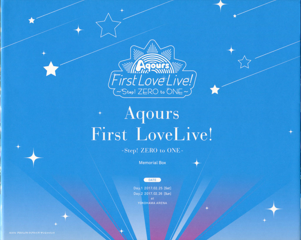 《LoveLive! Sunshine!! Aqours First LoveLive! 〜Step! ZERO to ONE!!〜》(日语:ラブライブ!サンシャイン!! Aqours First LoveLive! 〜Step! ZERO to ONE!!〜)是于2017年2月25日、26日在日本横滨体育馆举办的演唱会,也是Aqours首场大型演唱会。
