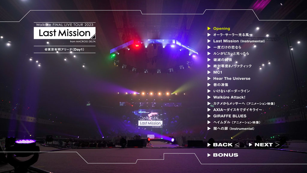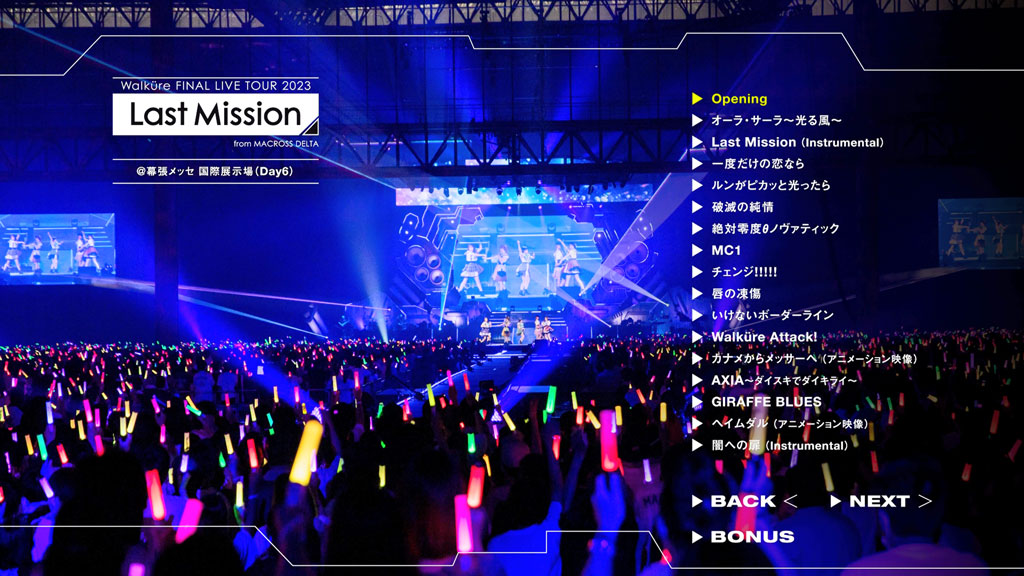 約74,000人を動員した「マクロス」史上初の全6公演アリーナツアーのうち、初日と千秋楽を完全収録。