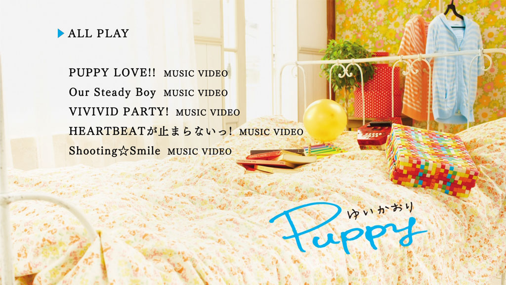 ゆいかおり 1stアルバム SPECIAL EDITION! 映像内容一新! ファン待望! MUSIC VIDEO Blu-ray化! 大人気のアルバムリード曲「PUPPY LOVE!!」、そしてデビューシングル~4thシングルまでの計5本のMUSIC VIDEOを収録! 2013年後半、さらに勢いづく、ゆいかおりの1stアルバムをこの機会に是非!! ※CDの内容は2011年9月21発売「Puppy」(KIS-91722)と同内容です。