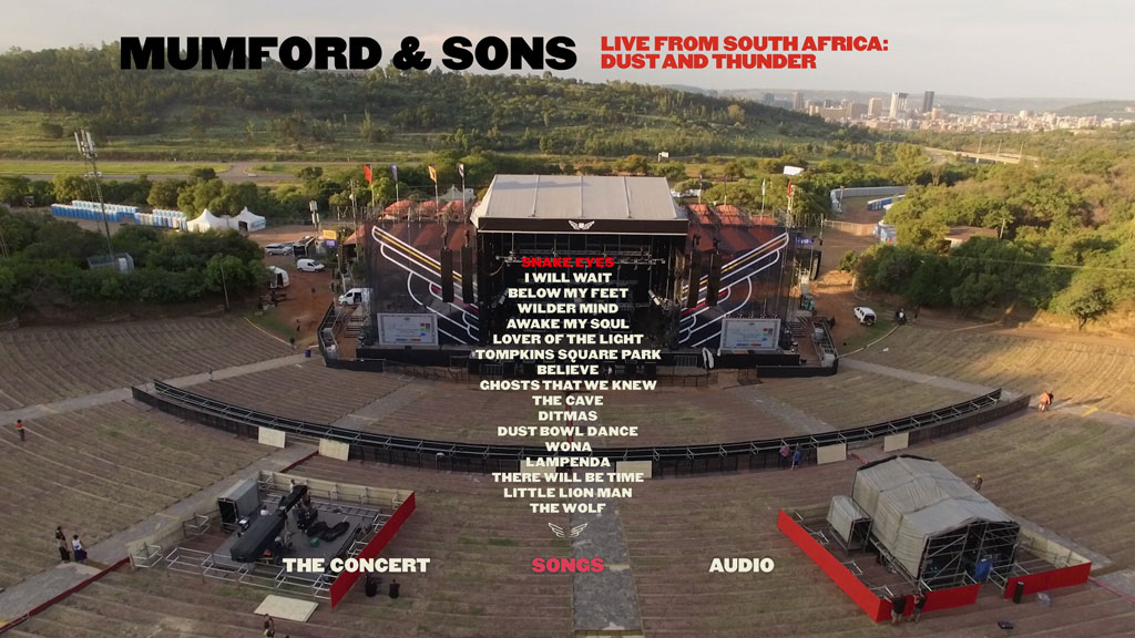 Chronicling the first meeting of South Africa with its favourite British band, Mumford & Sons, award-winning director Dick Carruthers gets to the very heart of what makes Mumford & Sons such a special act. Filmed live against the beautiful Pretorian outback, the band performs their most recent material and classic hits in front of an exhilarated crowd. Filmed in stunning 4K and presented in DTS-HD 5.1 Master Audio and Dolby Atmos.