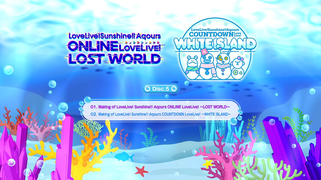 2020年10月10~11日に開催された無観客有料生配信ライブ「ラブライブ!サンシャイン!! Aqours ONLINE LoveLive! ~LOST WORLD~」と、2020年12月30~31日に開催されたシリーズ初のカウントダウンライブとなった無観客有料生配信ライブ「ラブライブ!サンシャイン!! Aqours COUNTDOWN LoveLive! ~WHITE ISLAND~」を収録。