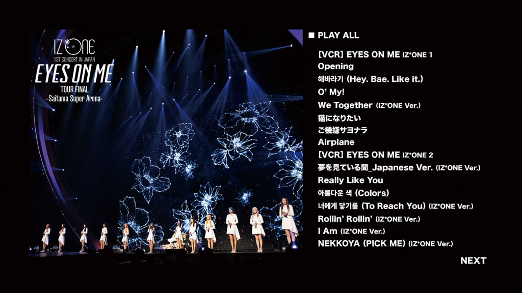 IZ*ONEが2019年に行った初の日本アリーナツアーより、ファイナルとなったさいたまスーパーアリーナ公演の模様をBD化。「Hey. Bae. Like it.」「O’ My!」ほか、アンコールを含む全25曲を収録。フォトブック、B3ポスターほかを封入。