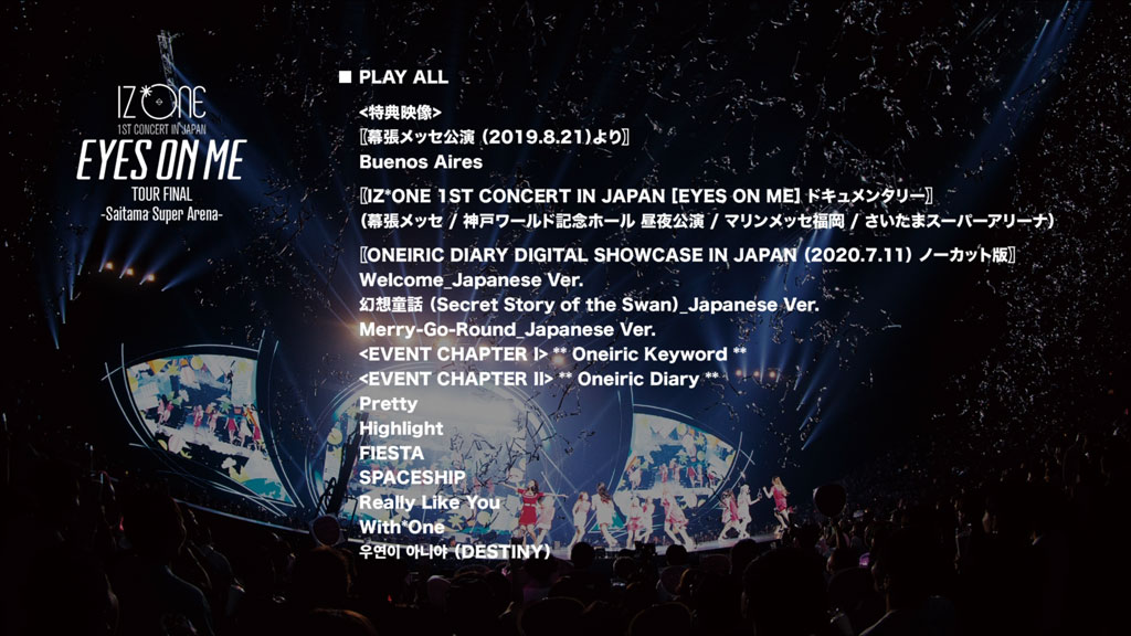 IZ*ONE初のアリーナツアーのファイナルとして2019年9月25日に開催された、さいたまスーパーアリーナでの公演に加え、ツアー初日の幕張メッセ公演で披露された「Buenos Aires」もボーナス映像として収録される他、幕張、神戸、福岡、さいたまの日本ツアー全4会場での舞台裏を収めたドキュメンタリー映像と、2020年7月11日に韓国から配信された「ONEIRIC DIARY DIGITAL SHOWCASE IN JAPAN」も収録されるなど、IZ*ONEのライブシーンを余すことなく収めたBlu-ray/DVDとなります。(トータル約4時間45分収録予定)