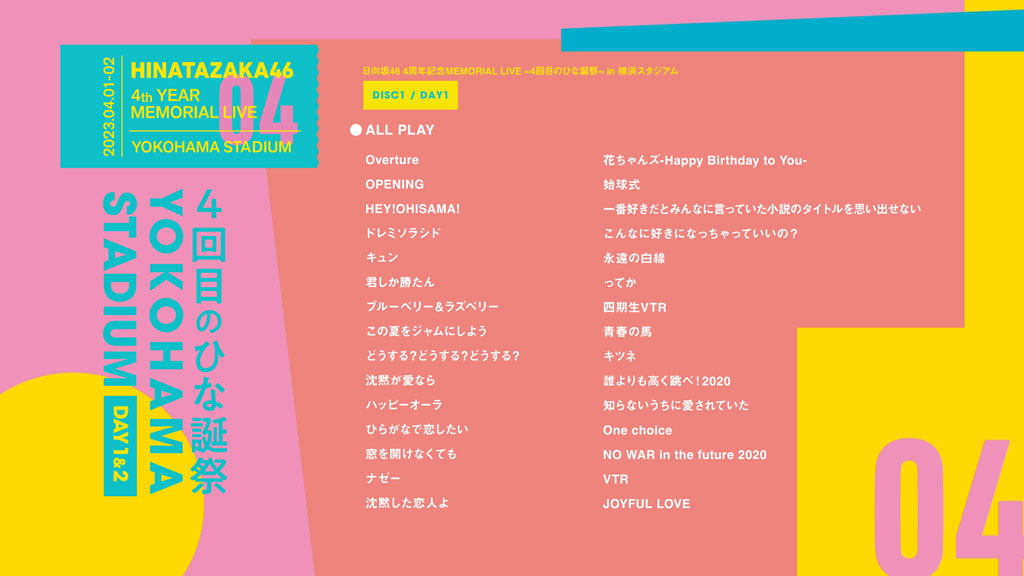 洋題:Hinatazaka46 4TH YEAR MEMORIAL LIVE -4KAIME NO HINATANSAI- IN YOKOHAMA STADIUM -DAY1 & DAY2-