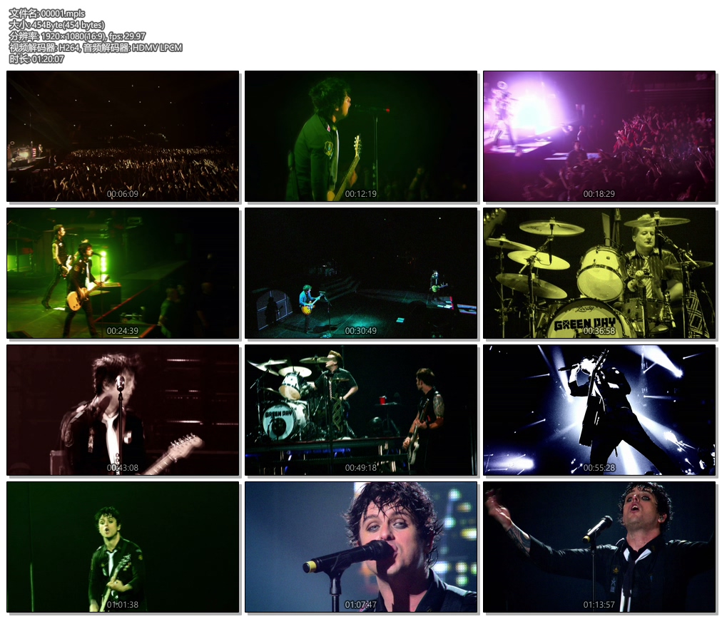 超过80分钟的Blu-ray完整记录2010年1月23日在日本埼玉县巨蛋的演唱会实况,包括多达6首CD版未收录的曲目,包括: Green Day夺得格林美奖『最佳专辑』大奖的关键作“Boulevard Of Broken Dreams”、《American Idiot》专辑的畅销单曲“Jesus Of Suburbia”、《Dookie》专辑中的名曲“Welcome To Paradise”、翻唱The Who名曲“My Generation”以及“Static Age”、“American Eulogy”等。嘶吼吶喊、尽情跳跃、痛快泪流!想要让你的身体达到摇滚乐史无前例最极致的高潮境界吗?唯一的方法就是欣赏Green Day这张最新现场演唱会专辑!!!